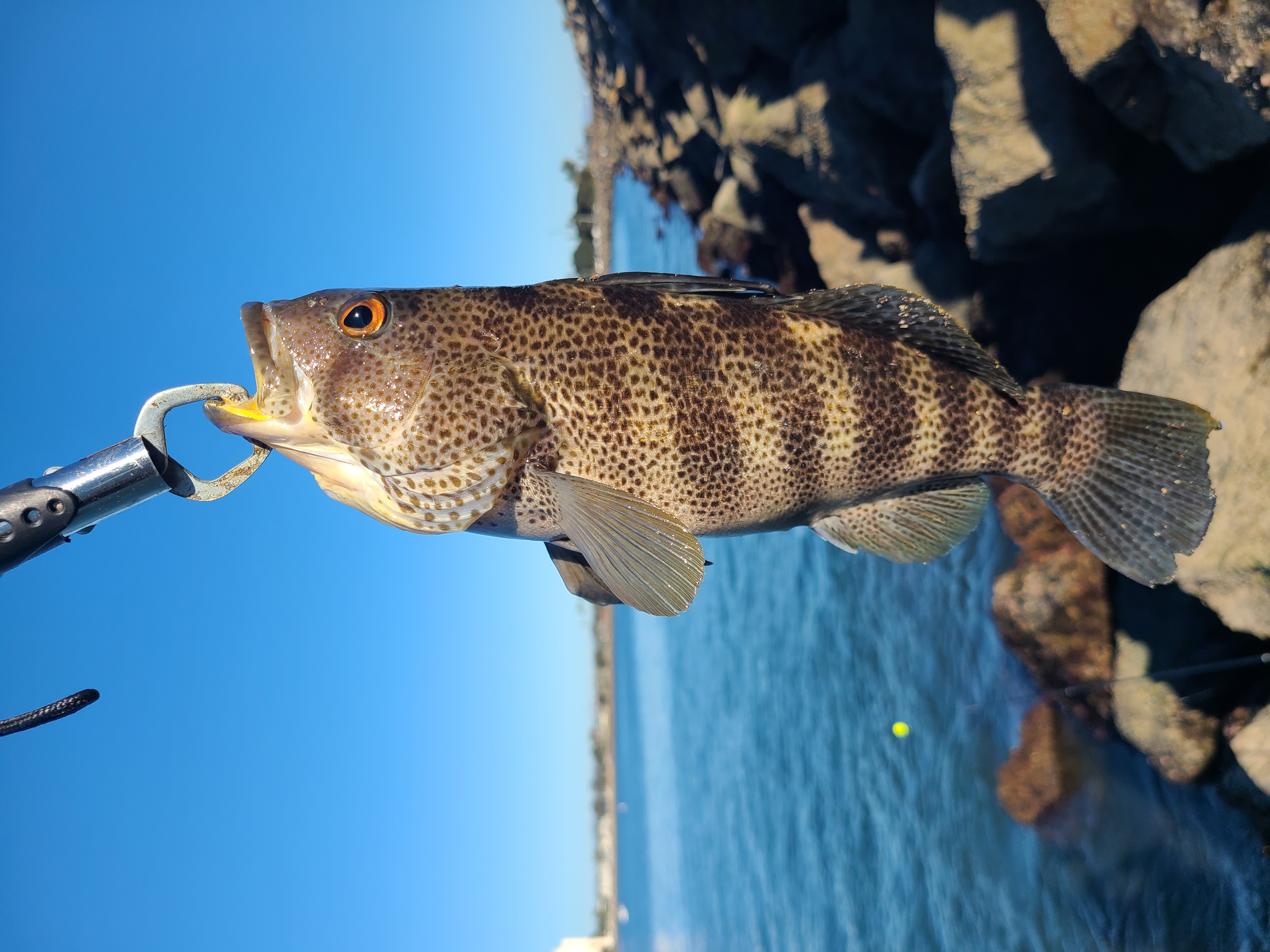 이 날은 샌디에고 내만에서 자주 볼 수 있는 배스 세 종류를 다 잡았는데, 다 사이즈가 괜찮았다. 15인치 칼리코배스. 12인치 얼룩무늬샌드배스. 14인치 바드샌드배스. 목표는 벵에돔이었지만, 뭐라도 계속~ 물어주니 신나.ㅋㅋ That day, I caught all three types of bass commonly found in the San Diego area, and they were all good-sized. A 15-inch calico bass, a 12-inch spotted sand bass, and a 14-inch barred sand bass. My main goal was opaleye, but it was exciting to keep getting bites, no matter what!